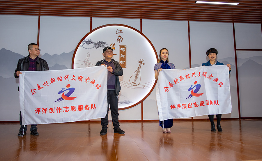 (▲评弹创作志愿服务队、评弹演出志愿服务队授旗仪式)